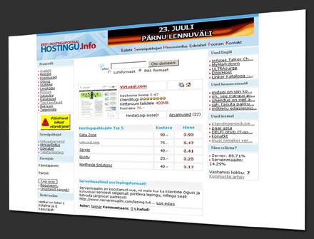 Eesti hostinguportaal ehk siis hostingu info portal on saanud omale uue väljanägemise, ja ka sisu on uuendatud väheke. Tervitatav tegu selle tegijate poolt, eriti veel suvel kui enamus inimesi on puhkusel ja üldse monitori taha ei sattu ja suurem osa portaalidest ja uudisteväljaannetest seisab “liikumatult”.